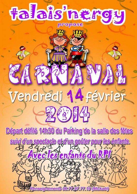 - 14H30 : Départ du cortège de la salle des fêtes de Talais avec les chars dans les rues.