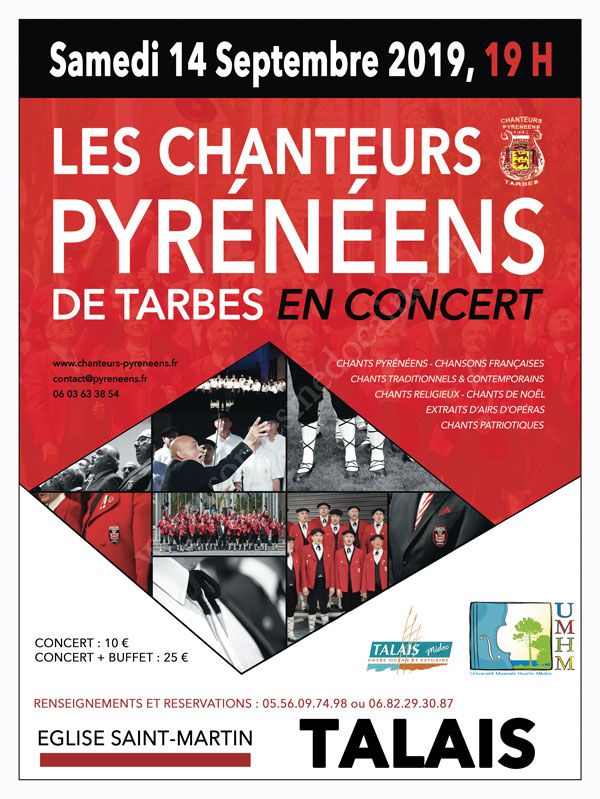 Les chanteurs Pyrénnéens de tarbes en concert suivi d'un repas à la salle des fêtes.