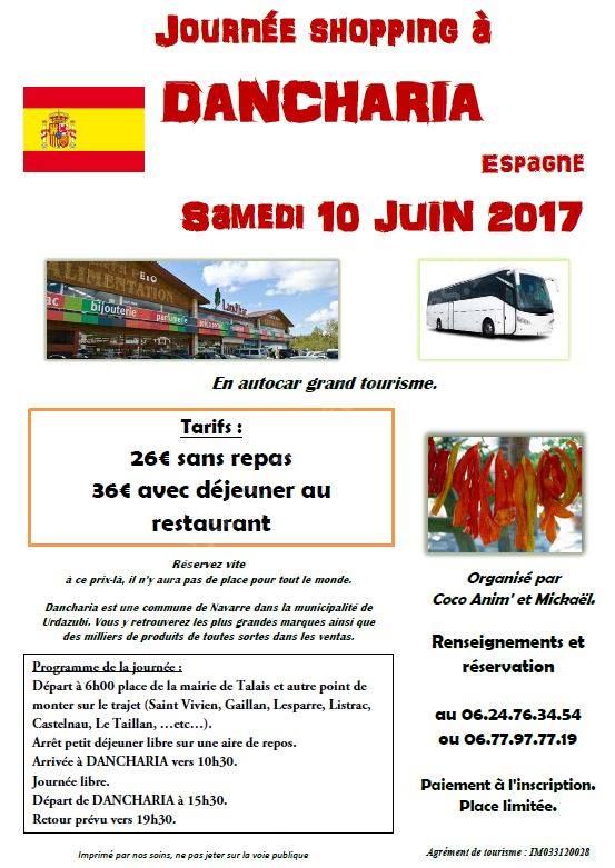 Départ en bus grand tourisme à 6h00 de la place de la mairie de Talais et autres points de monter sur le trajet (Saint Vivien du médoc, Gaillan en Médoc, Lesparre, Listrac, Castelnau, Le Taillan en Médoc, …etc….)