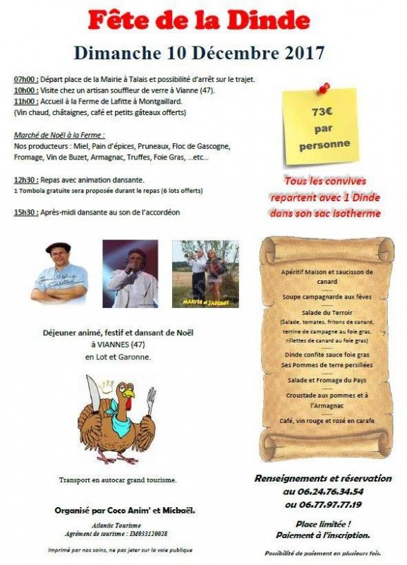 Déjeuner animé, festif et dansant de Noël à VIANNES (47) en Lot et Garonne.