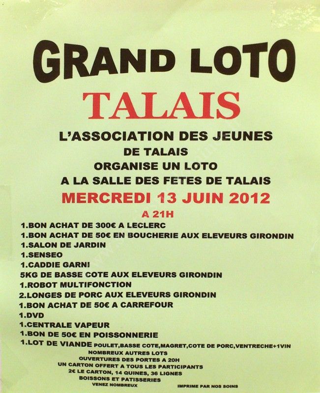 Grand Loto organisé par l'Association des jeunes de Talais.