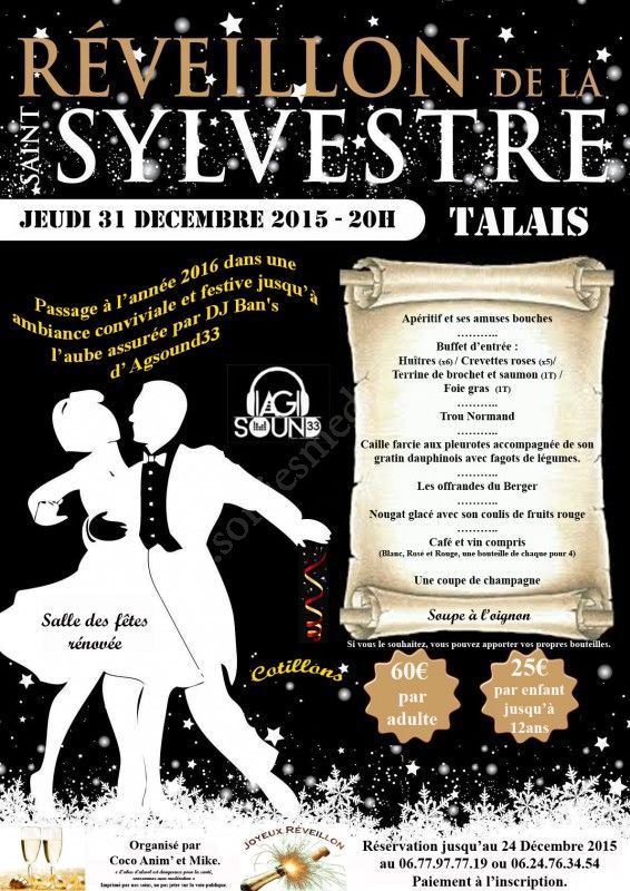 Passage à l’année 2016 dans une ambiance conviviale et festive jusqu’à l’aube assurée par DJ Ban's d’AgSound33.