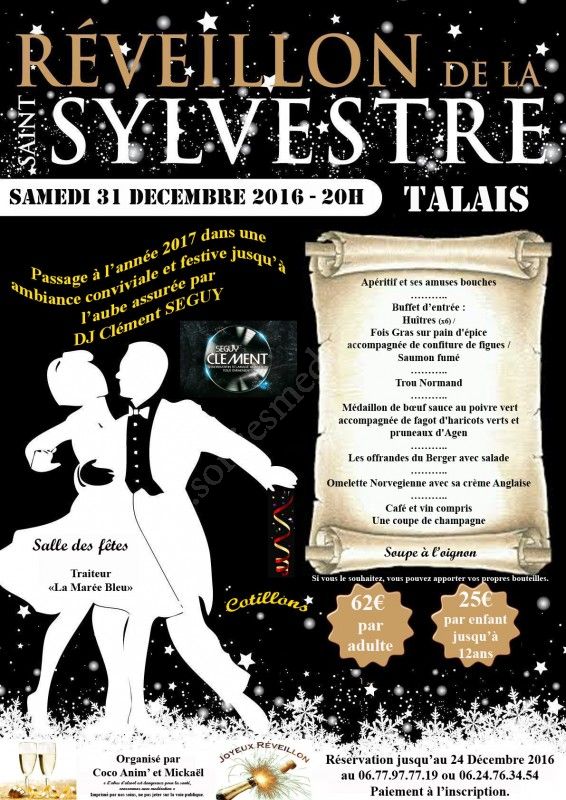Renseignements et réservation jusqu’au 24 Décembre 2016 par téléphone.