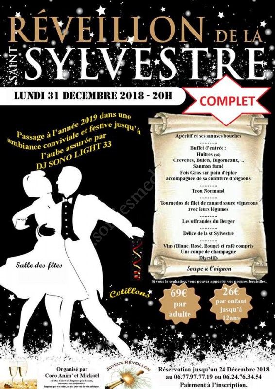 Passage à l’année 2019 dans une ambiance conviviale et festive jusqu’à l’aube assurée par DJ.