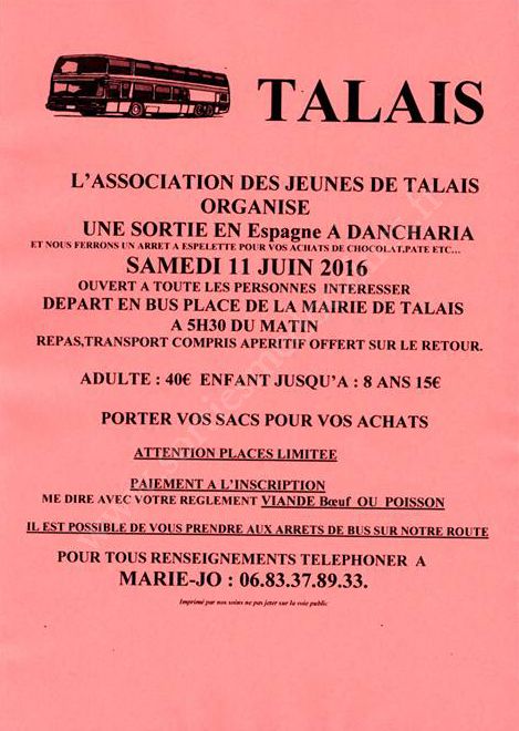 L'Association des Jeunes de Talais organise une sortie en Espagne, à Dancharia.