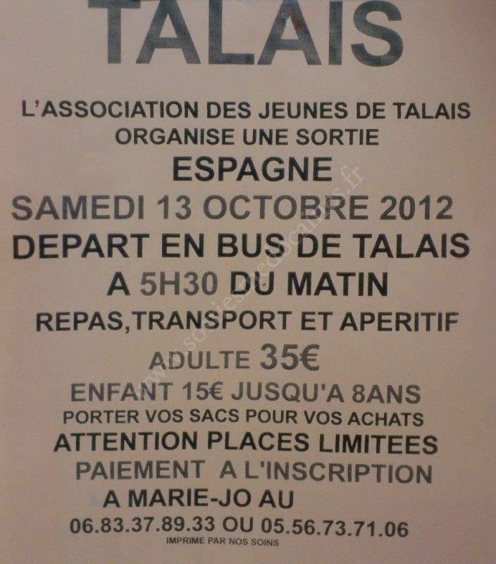 L’Association des Jeunes de Talais organise un voyage en Espagne !
