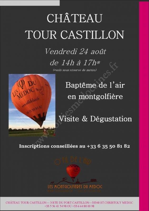 En partenariat avec O'fil de l'air, les montgolfières du Médoc, venez un moment magique dans le vignoble du Château Tour Castillon.