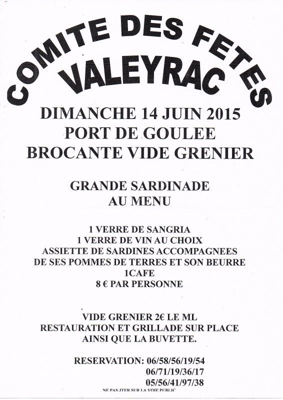Brocante/vide-grenier et sardinade organisés par le Comité des Fêtes de Valeyrac.