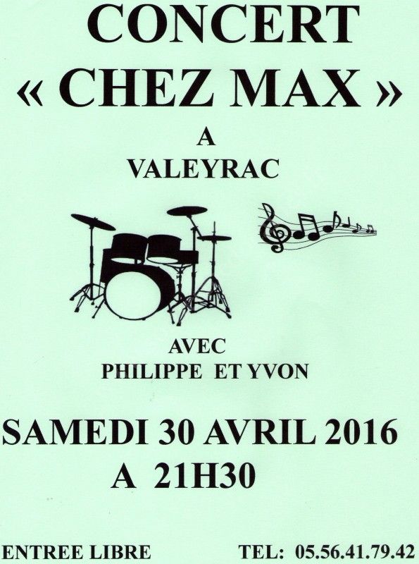 Chez Max vous accueille pour un concert gratuit avec Philippe et ses musiciens, ambiance assurée.
