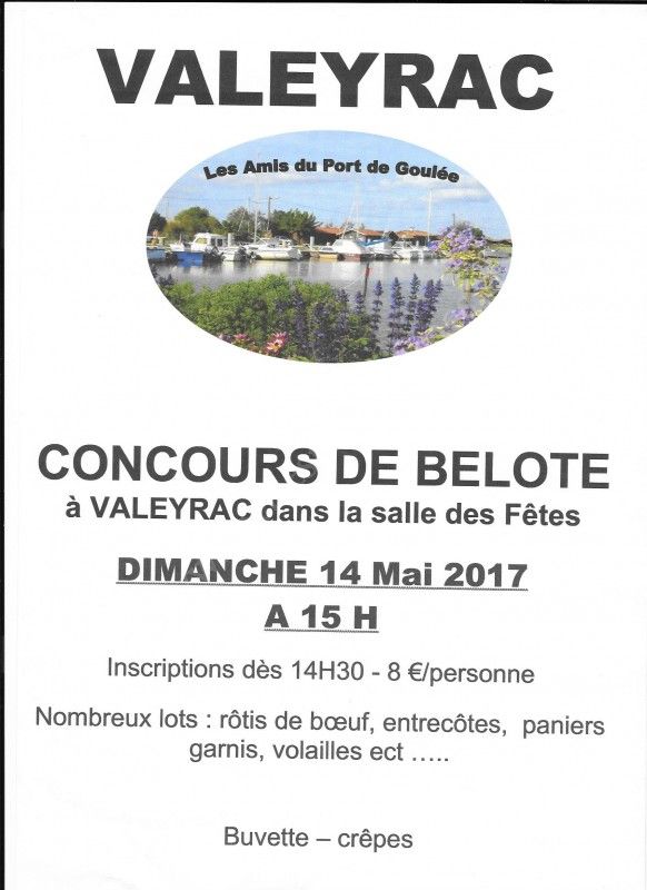 CONCOURS DE BELOTE A LA SALLE DES FETES DE VALEYRAC DIMANCHE 14 MAI 2017