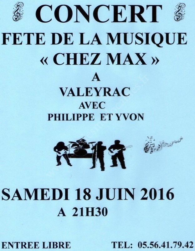 A l'occasion de la fête de la musique, chez max vous accueille pour un concert avec philippe et ses musiciens.