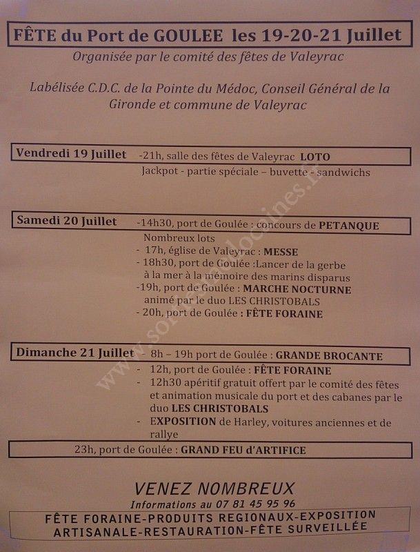 - 23h00 Grand feu d’artifice au port de Goulée.