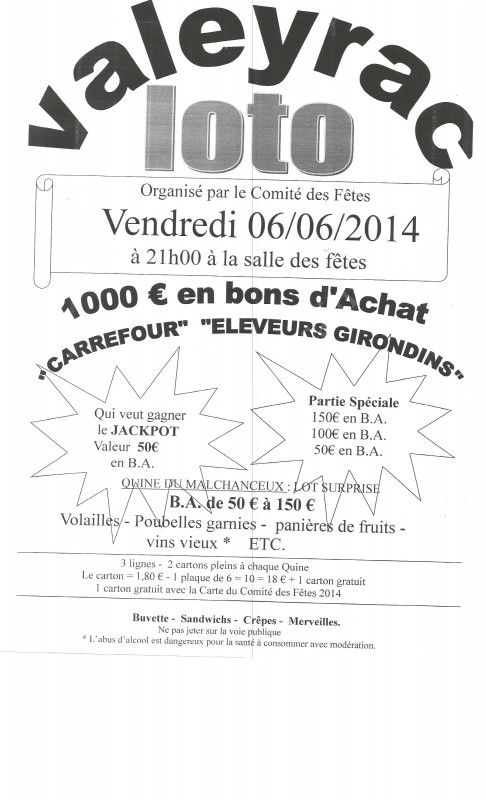 VENEZ NOMBREUX A NOTRE LOTO AFIN DE NOUS AIDER A ORGANISER NOTRE FETE DES 18/19 ET 20 JUILLET