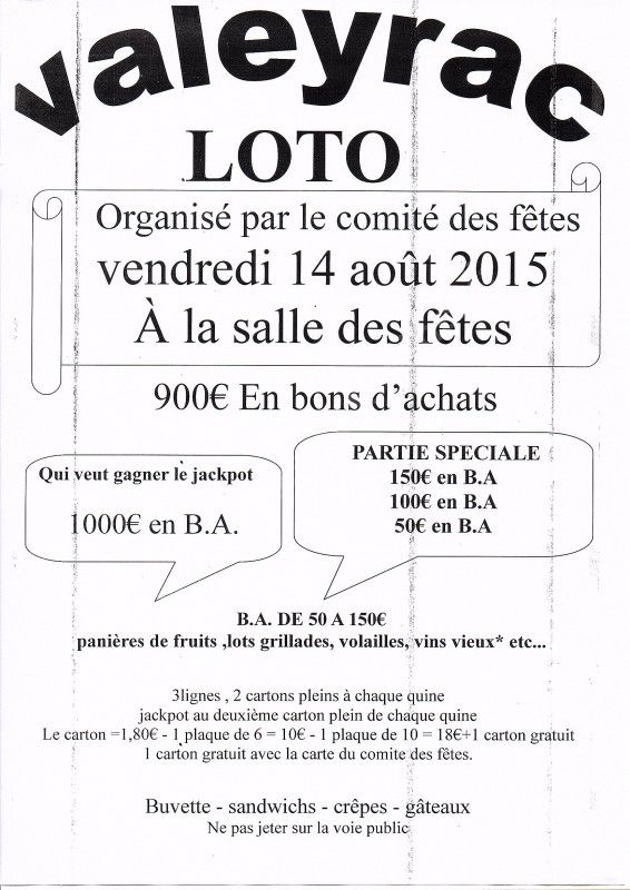 Loto du comité des fêtes de Valeyrac