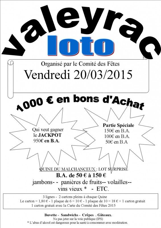 Loto du comité des fêtes de Valeyrac.