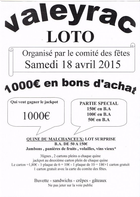 Loto organisé par le comité des fêtes de Valeyrac.