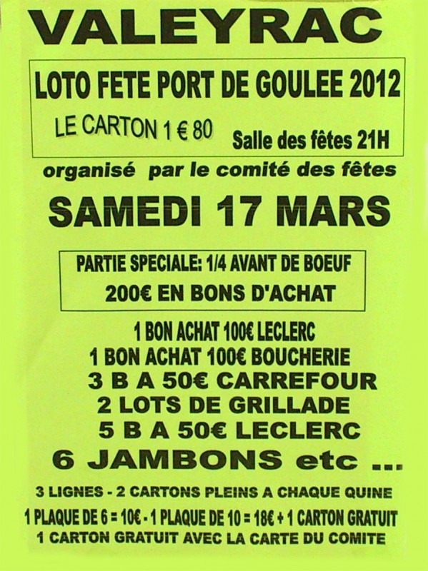 Partie speciale : 1/4 avant de boeuf et 200 € en bons d'achat.