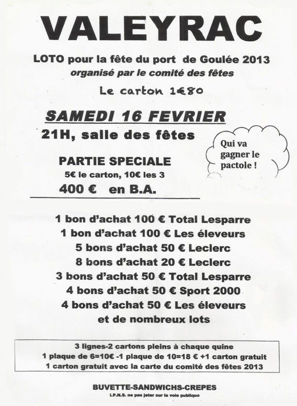 Organisé par le comité des fêtes pour la fête du port de Goulée 2013.