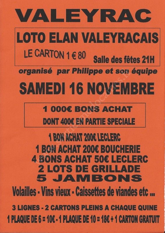 Loto de l'Elan Valeyracais organisé par Philippe et son équipe.