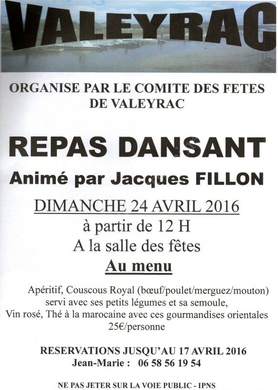 Repas dansant organisé par le comité des fêtes de Valeyrac et animé par Jacques FILLON.