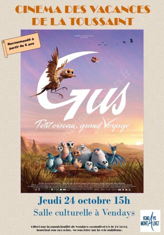 Cinéma des vacances de la Toussaint : Gus, Petit Oiseau, Grand Voyage