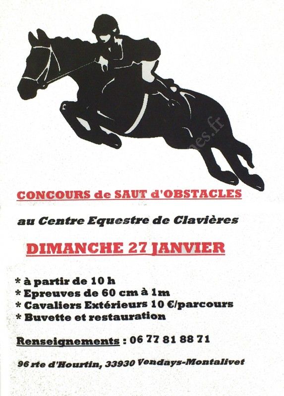 Venez assister au concours de saut d'obstacles organisé au centre équestre de Clavières.