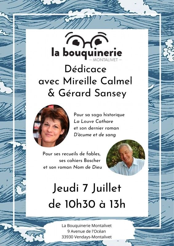 La bouquinerie accueille en dédicace Mireille Calmel pour sa saga historique La Louve Cathare, son dernier roman D'écume et de sang, ainsi que ses autres romans, traitant notamment d'Aliénor d'Aquitaine.