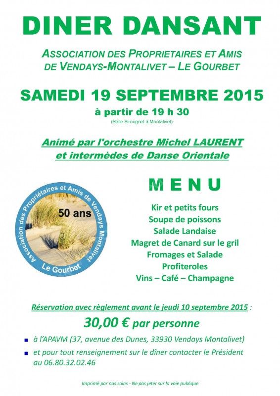 DINER DANSANT de l' ASSOCIATION DES PROPRIETAIRES ET AMIS DE VENDAYS-MONTALIVET – LE GOURBET