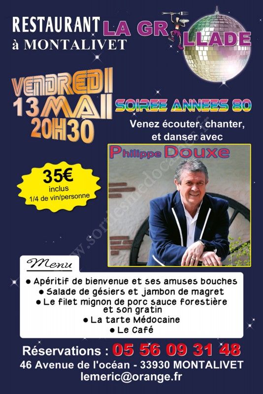 Venez chanter et danser au son des années 80 avec notre ami Philippe Douxe une soiree de folie.