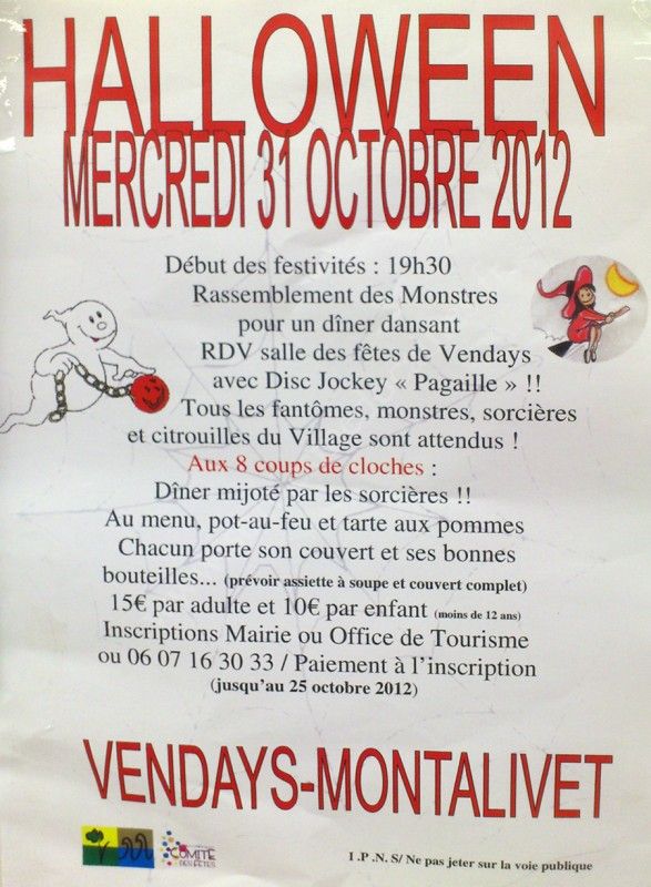 Inscriptions : Mairie ou Office de Tourisme ou 06 07 16 30 33 / Paiement à l’inscription (jusqu’au 25 octobre 2012).