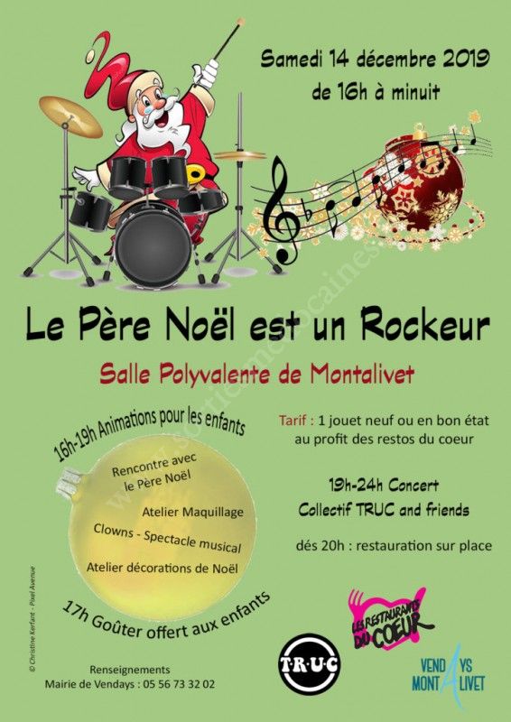 "Le Père Noël est un Rockeur" est un festival dont la 5ème édition se déroulera cette année le samedi 14 décembre à la salle polyvalente de Montalivet.