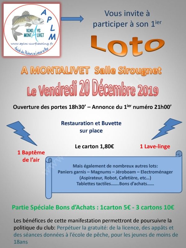 L'Amicale des Pêcheurs de Lancer en Mer (APLM) organise son 1ier loto.