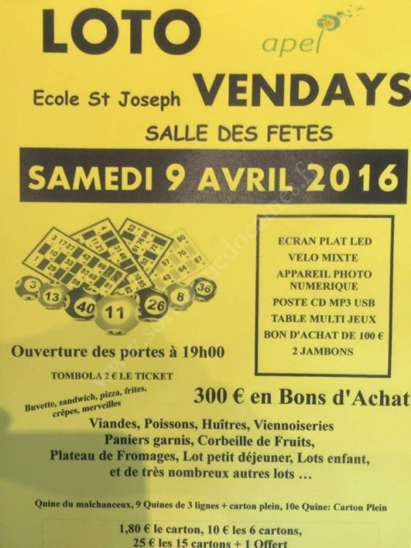 2° LOTO A.P.E.L Ecole Saint Joseph de VENDAYS