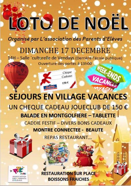 Loto de Noël organisé par l'Association des Parents d'Elèves.