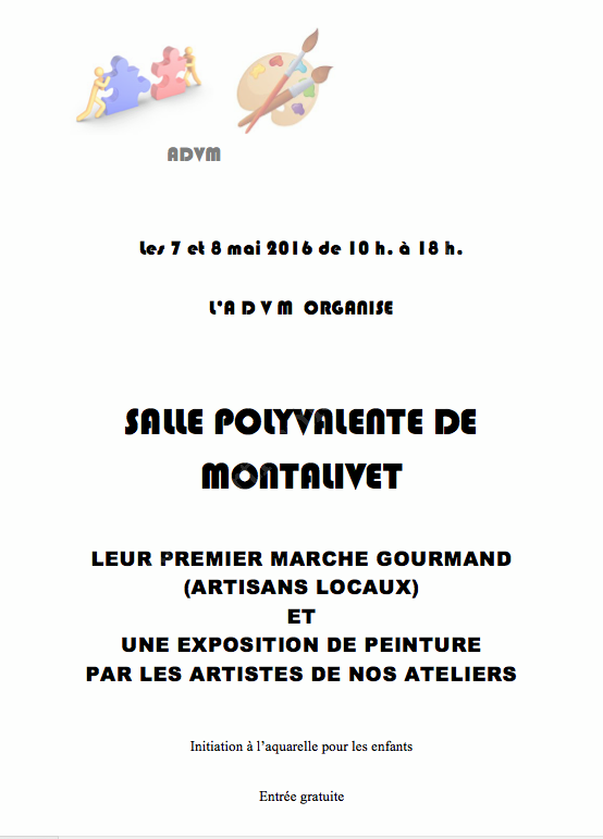 L'ADVM organise son premier marché gourmand (artisans locaux) et une exposition de peinture par les artistes de leurs ateliers.