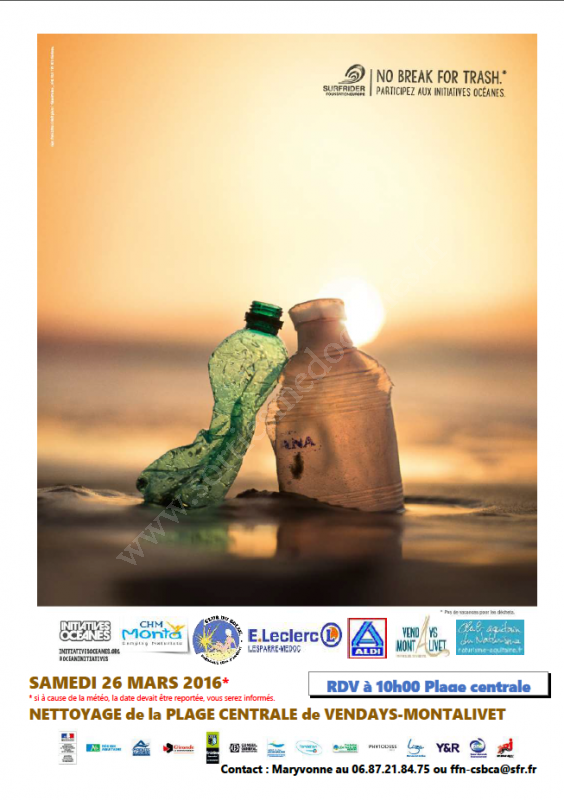 Nettoyage de la plage centrale de Montalivet le samedi 26 mars 2016.