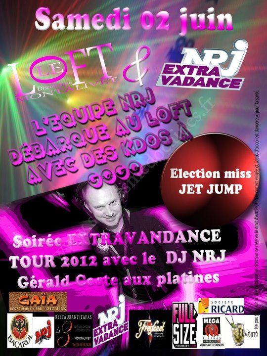 Soirée NRJ avec l'élection de miss Jet Jump 2012 au Loft Club.