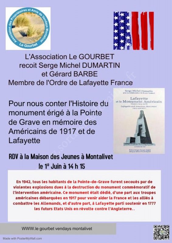 L'association Le Gourbet reçoit Serge Michel DUMARTIN et Gérard Barbe (membre de l'Ordre de Lafayette France) pour nous conter l'histoire du monument érigé à la Pointe de Grave en mémoire des Américains de 1917 et de Lafayette.