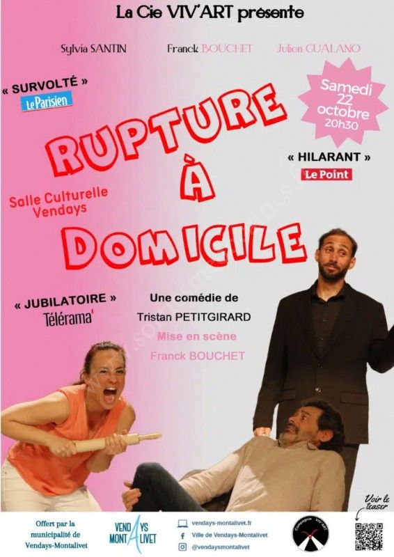 Rompre n'est jamais agréable, alors pourquoi ne pas payer quelqu'un pour le faire à votre place... Éric a créé une agence chargée d'annoncer, à votre place, la rupture avec votre ami ou conjoint - un service impeccable, efficace avec à l'occasion un bouquet de fleurs pour agrémenter la nouvelle - un service qui fait ses preuves. Mais ce soir-là, rien ne se passe comme prévu. Eric Vence fondateur de “ Rupture à domicile “, est missionné par Hyppolite pour annoncer à sa compagne qu'il a décidé de la quitter. C'est là qu'Eric tombe sur Gaëlle, son ex, partie il y a 7 ans sans la moindre explication . Sur un air de vaudeville, moderne et imprévisible, l'auteur revisite la comédie romantique avec du rire, des quiproquos et des retournements de situation incessants. C'est le début d'un poker menteur explosif dont personne ne ressortira indemne...
