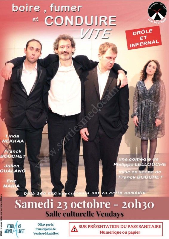La municipalité de Vendays-Montalivet vous invite à la représentation de la Cie Viv'Art dans la pièce "Boire , fumer et conduire vite" de Philippe LELLOUCHE.