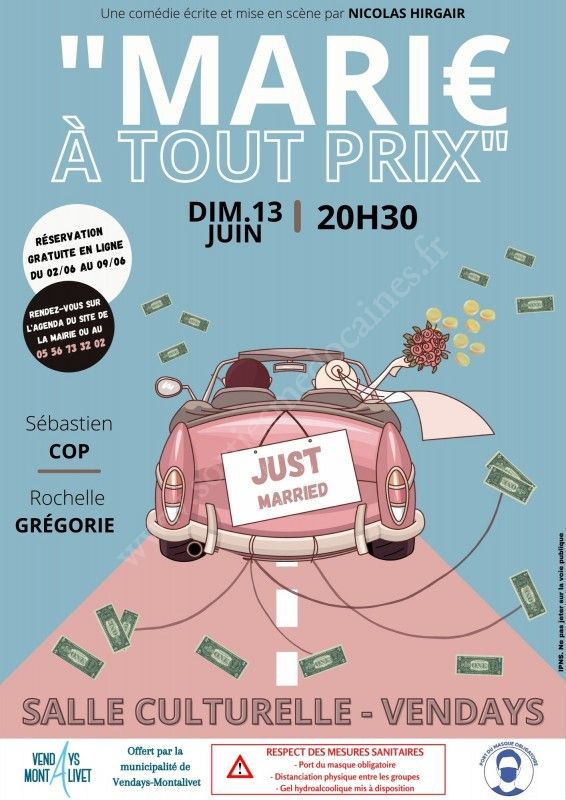 Dans le cadre de la fête locale qui aura lieu le week-end du 12 & 13 juin, la municipalité de Vendays-Montalivet vous invite à une représentation de “Marié à tout prix".