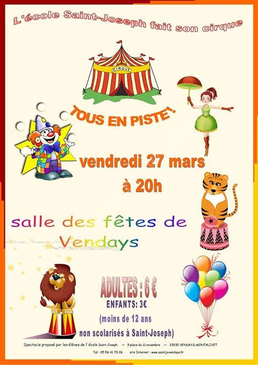 Petits et Grands nez rouges sont attendus sous le grand chapiteau pour une soirée exceptionnelle et haute en couleurs ! L'école Saint Joseph vous transportera dans l'univers circassien !!!!