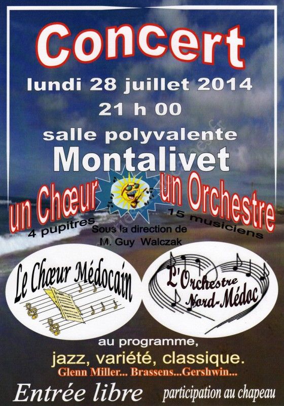 Concert du Choeur Médocain (4 pupitres) et de l'Orchestre Nord Médoc (15 musiciens) sous la direction de M. Guy Walczak.