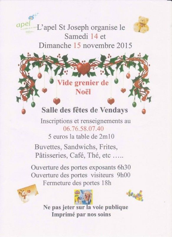 Vide Grenier organisé par l'APEL de l'école Saint Joseph de Vendays-Montalivet.