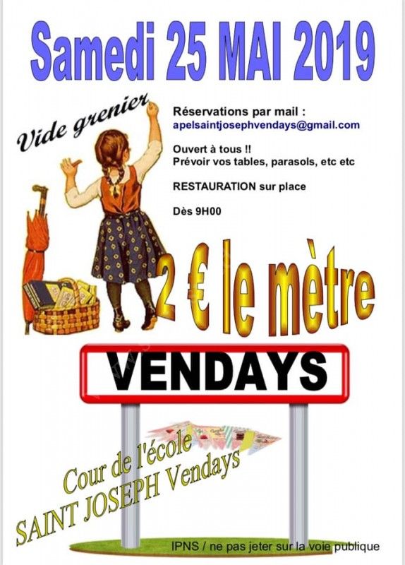 VIDE GRENIER Organisé par l'APEL Ecole Saint-Joseph de Vendays.