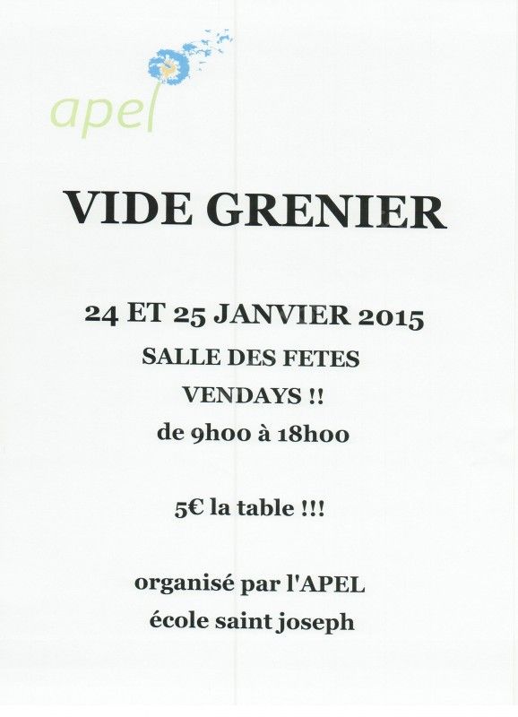 VIDE GRENIER ORGANISE PAR L'APEL DE L'ECOLE SAINT JOSEPH.
