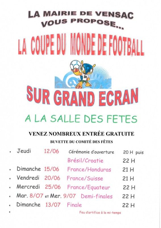La coupe du monde sur grand écran offert par la commune de Vensac !