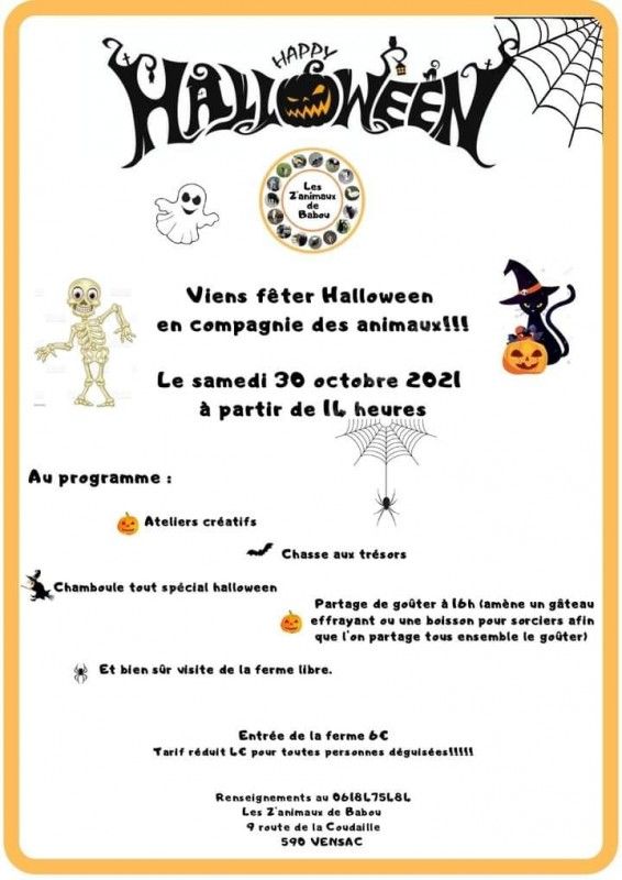 Viens fêter halloween avec les animaux chez "Les Z'animaux de Babou".