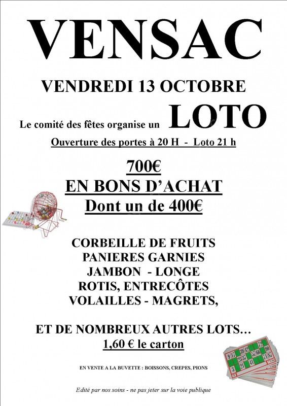 Venez passer une agréable soirée et tenter de remporter de nombreux lots dont :