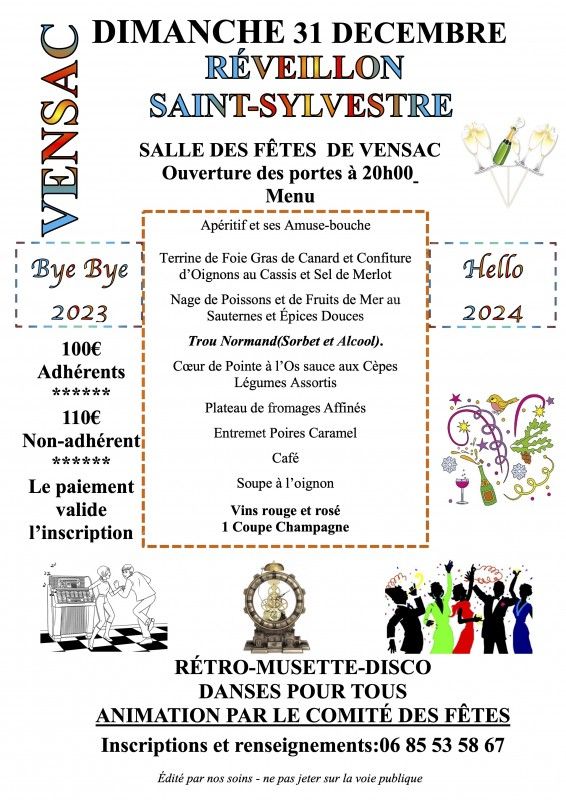 Le comité des fêtes de Vensac organise le réveillon de la saint Sylvestre.